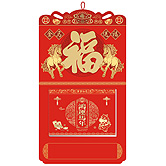 • 特度對(duì)開中國(guó)紅金雕窗花掛歷